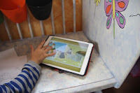 Tercera caja: historia Bíblica en este caso Abraham... Es una app estupenda donde se rigen a la Bíblia y hay alguna actividad después de cada historia, las historias son cortitas y los dibujos muy acertados. A la vez le imprimo unos dibujos de la historia de Abraham y vamos mirando conforme explica.